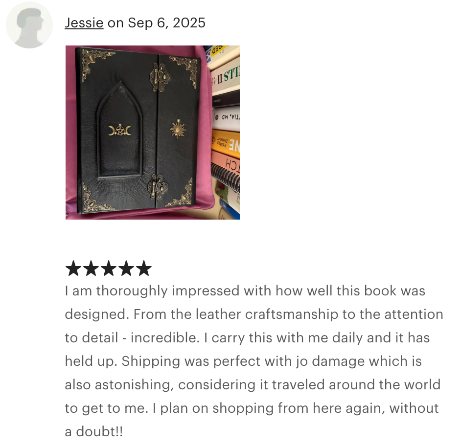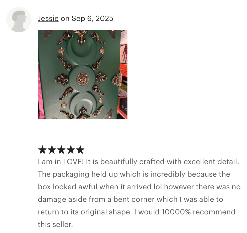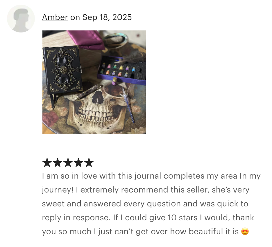 All purchases are final sale, as each grimoire is handmade to order. Returns or exchanges are only accepted if the item arrives damaged.
